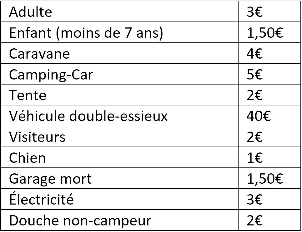 Tarifs du camping :